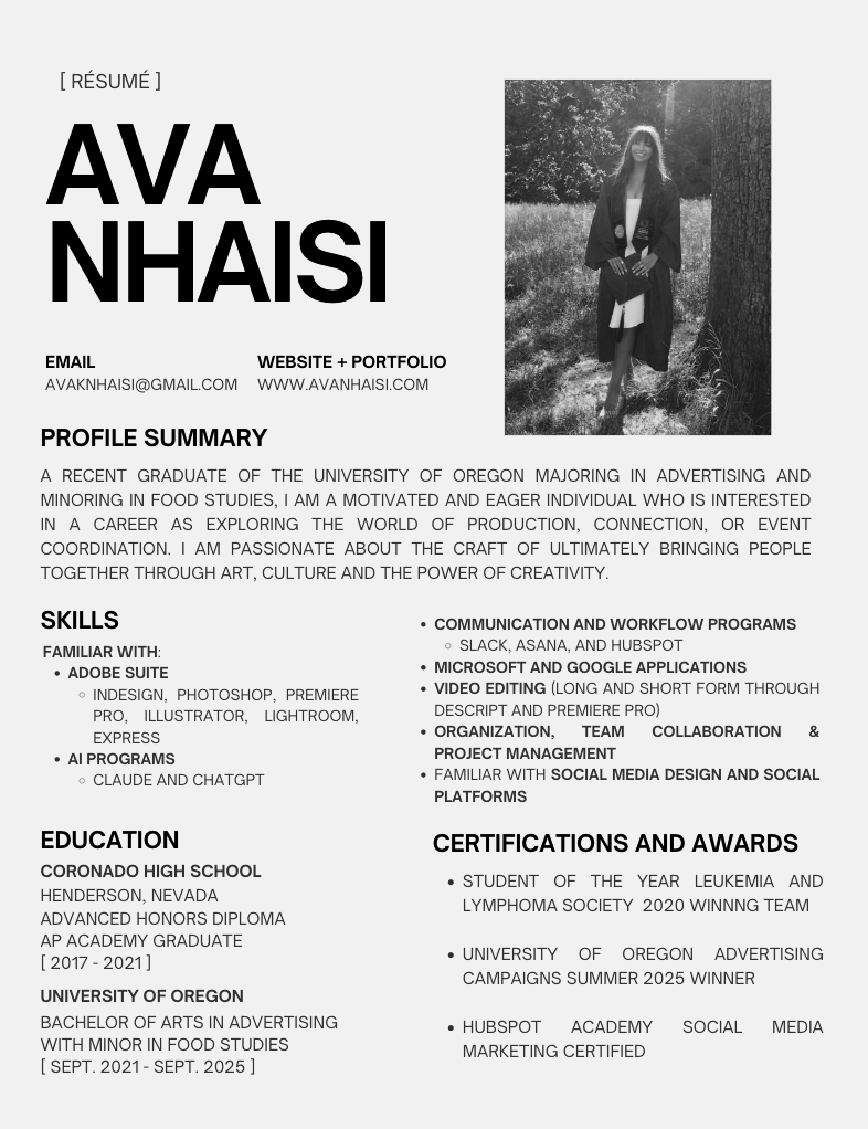 LinkedIn: Ava Nhaisi Email: avaknhaisi@gmail.com Résumé: Click image to download and view Lets get in touch certifications • Hubspot Academy Social Media Marketing Certified